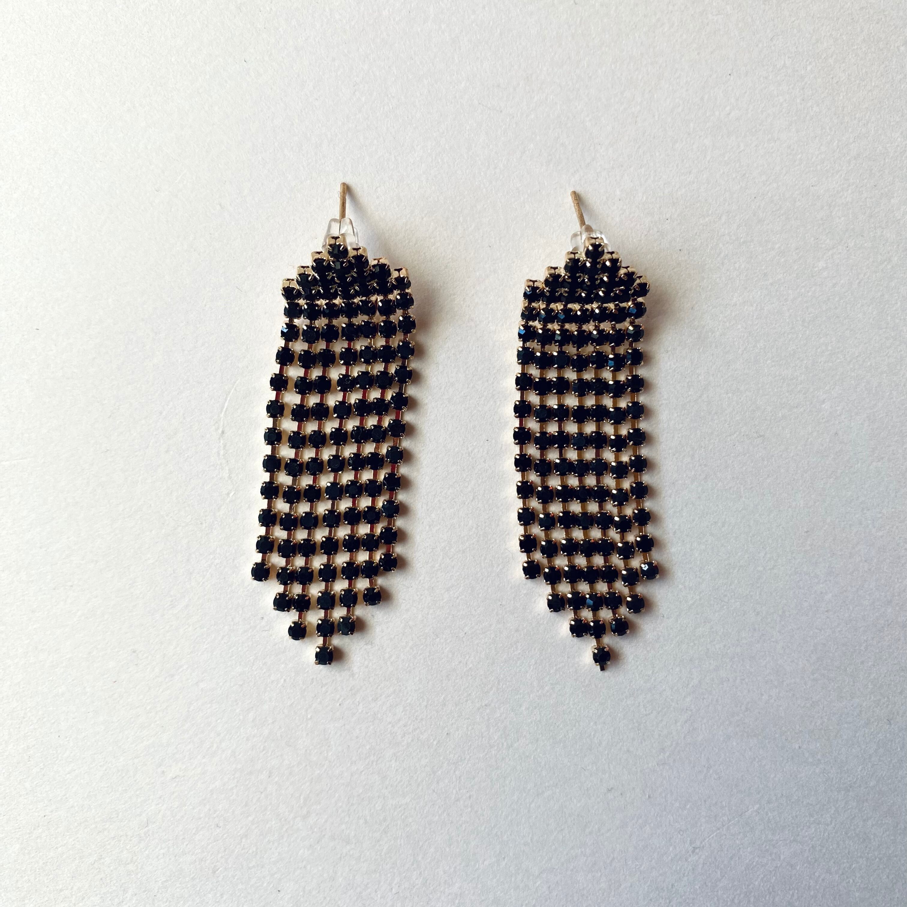 ■タッセルピアス×ブラック×ゴールド
